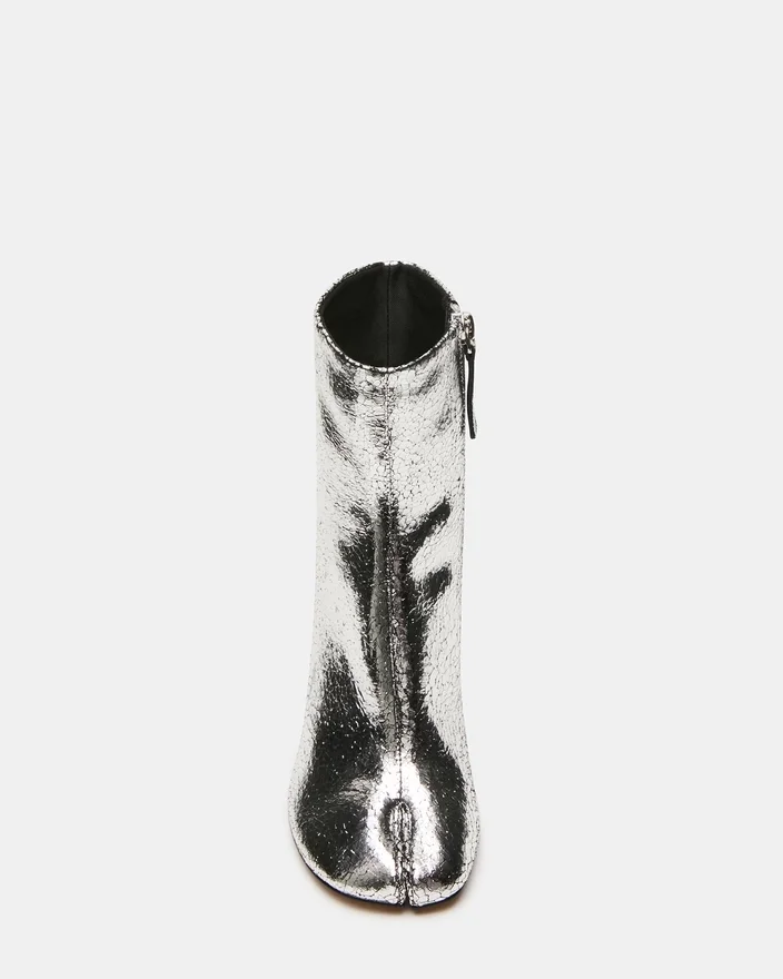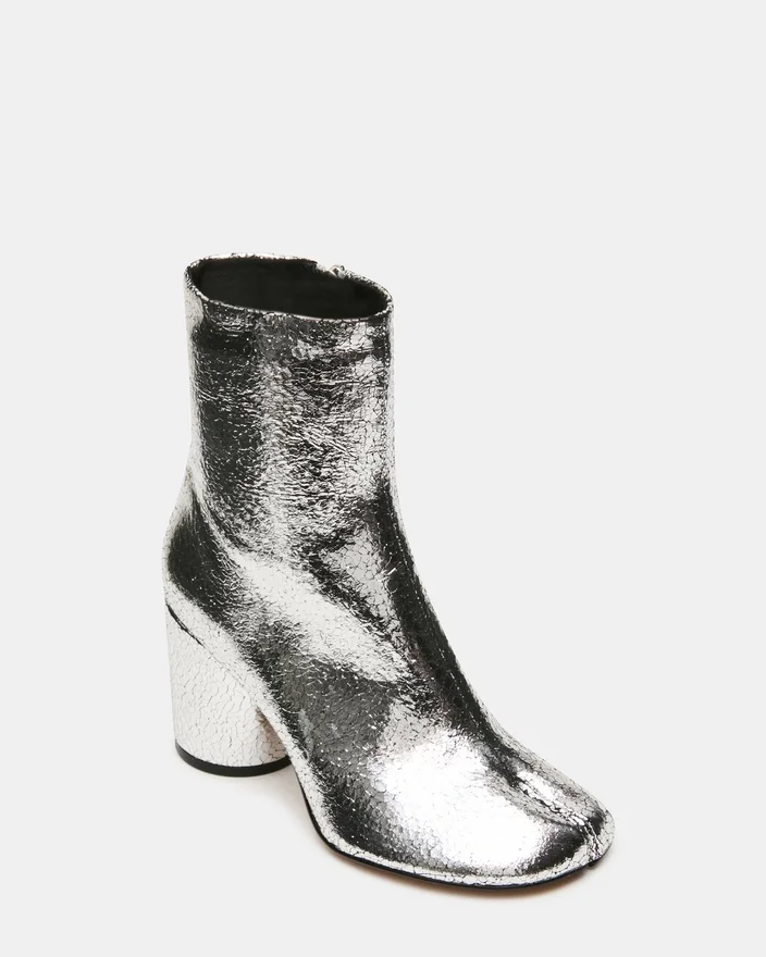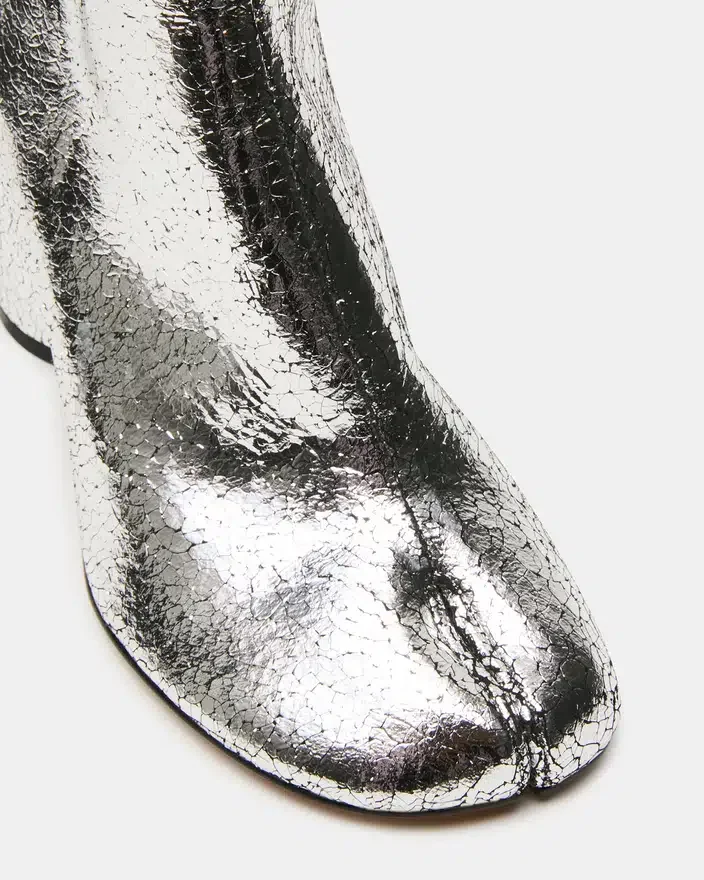 Modelul Caro Silver Crinkle prezintă silueta distinctivă Pantofi Tabi cu vârf despicat, oferind o estetică modernă și confort funcțional. Un toc gros și robust asigură un sprijin stabil pe tot parcursul zilei, păstrând în același timp un profil elegant. Această botină combină perfect stilul rafinat cu versatilitatea de zi cu zi.