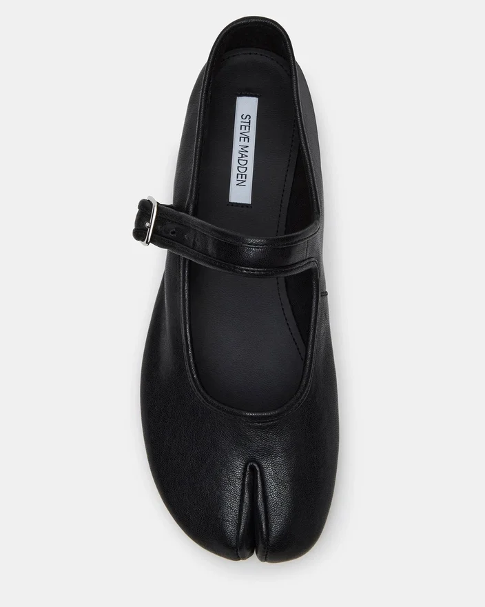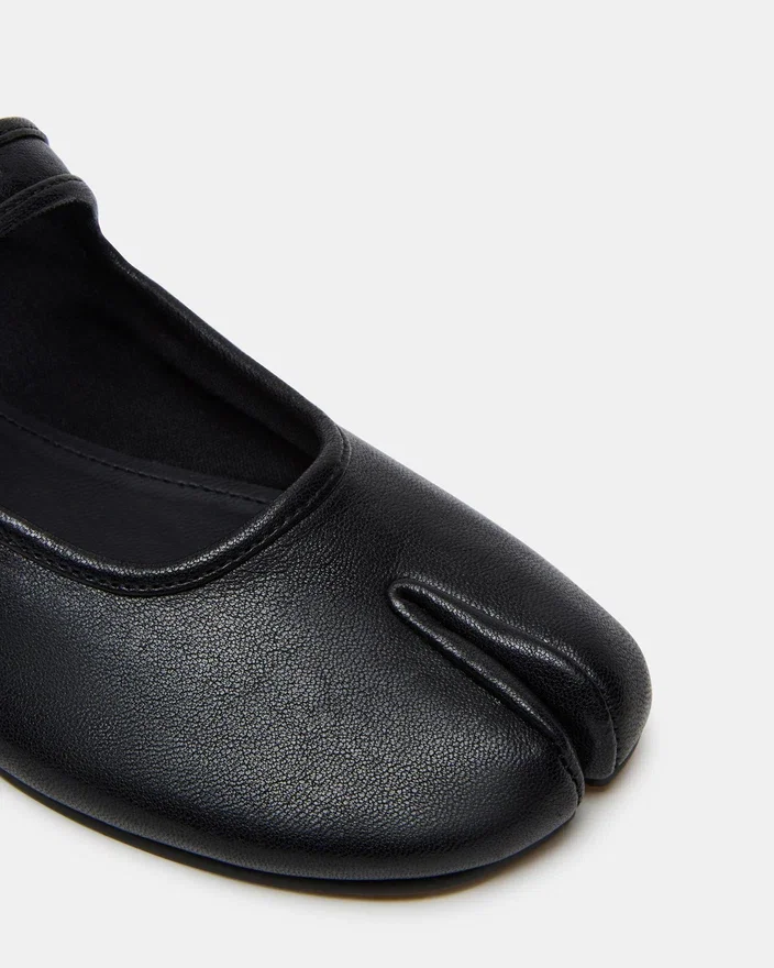 Modelul Calara din piele neagră combină designul contemporan cu eleganța atemporală. Acest model de Pantofi Tabi cu vârf despicat prezintă o siluetă grațioasă de balerină, care se adaptează perfect atât ținutelor casual, cât și celor elegante. Cureaua Mary Jane asigură o potrivire sigură și ajustabilă, iar talpa plată oferă confort pe tot parcursul zilei, fără a sacrifica stilul. Perfect pentru cei care caută o pereche de pantofi distinctivă, care echilibrează inovația cu farmecul clasic.
