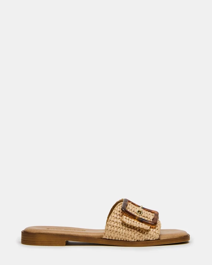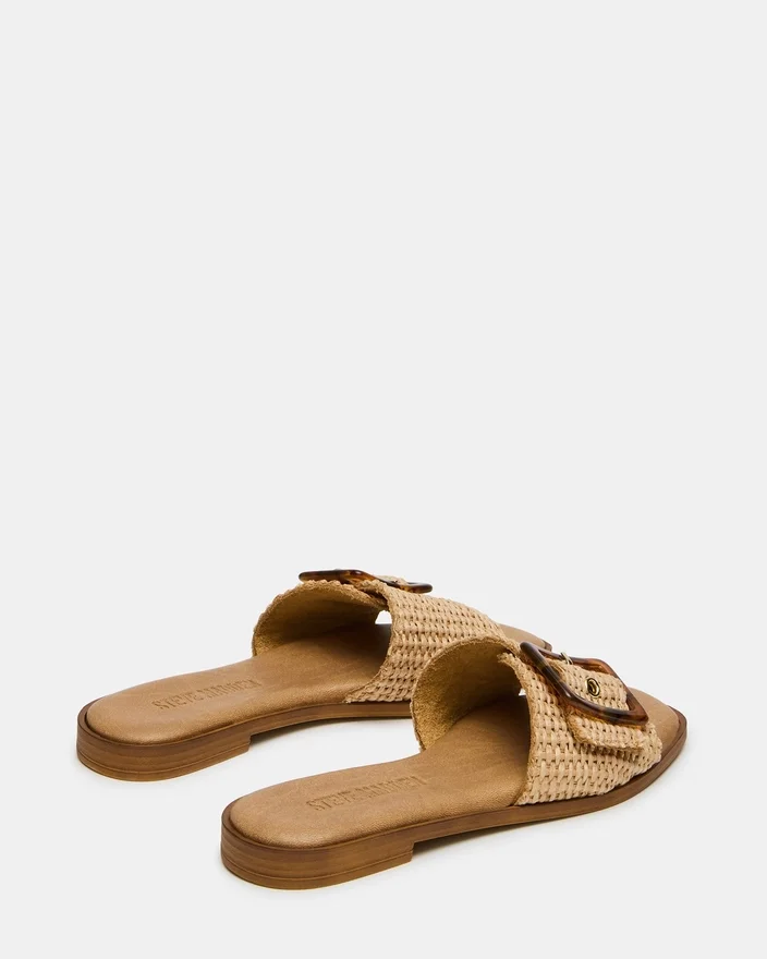 Îmbunătățiți-vă încălțămintea casual cu sandalele Happ Natural Raffia, care prezintă un design modern cu vârf pătrat pentru o siluetă elegantă. Detaliul cu cataramă reglabilă oferă o potrivire personalizată, îmbinând stilul cu confortul. Perfectă pentru purtarea de zi cu zi fără efort, această sandală combină eleganța contemporană cu funcționalitatea practică.