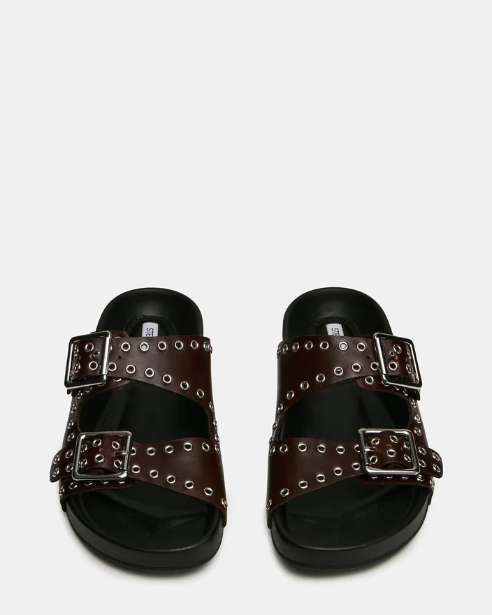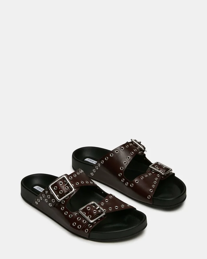 Sandala Abott din piele burgundă combină eleganța discretă cu confortul practic. Detaliile complexe cu ochiuri metalice împodobesc partea superioară, în timp ce cele două catarame asigură o potrivire personalizabilă și sigură. Talpa interioară de susținere este concepută pentru o purtare îndelungată, făcând din acest model o alegere sofisticată pentru cei care cer atât stil, cât și funcționalitate în încălțămintea de zi cu zi.