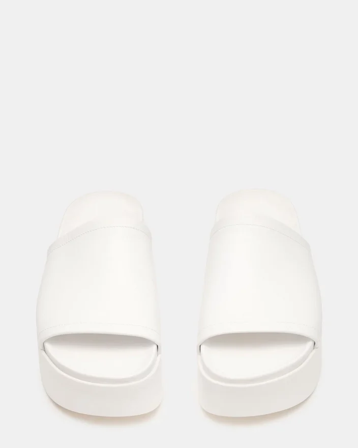 Sandala Arwen din piele albă are un design cu pantofi cu platformă plată și vârf rotunjit, pentru un look modern, dar confortabil. Cu o talpă groasă, această sandală oferă atât stil, cât și susținere. Îmbunătățește orice ținută cu aceste sandale versatile și elegante.