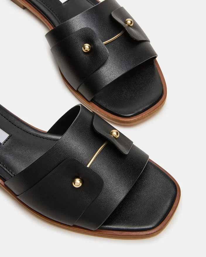Sandala Hasten din piele neagră oferă o sofisticare naturală, cu o siluetă simplă, realizată din materiale de calitate superioară. Detaliile delicate aurii pun în valoare designul minimalist, adăugând o notă rafinată care se potrivește perfect atât ocaziilor Casual, cât și celor elegante.