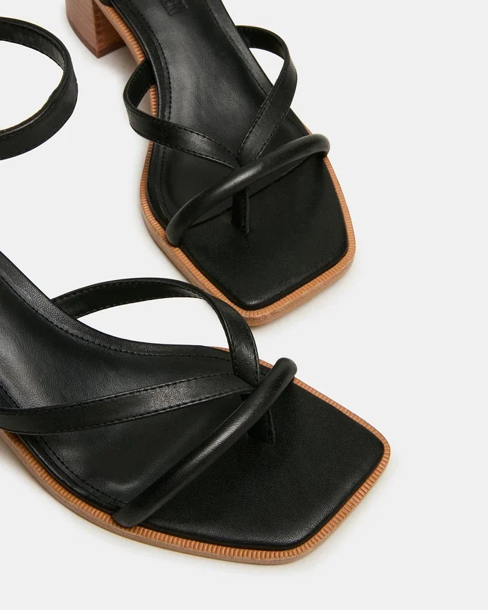 Îmbogățiți-vă colecția de încălțăminte cu modelul Tilly din piele neagră, o sandală cu toc gros, cu vârf pătrat și curele, concepută atât pentru stil, cât și pentru stabilitate. Dotată cu o curea de glezna sigură, această sandală asigură o potrivire sigură, în timp ce tocul gros și robust oferă un sprijin confortabil pentru purtare îndelungată. Confecționată din materiale de calitate, se asortează fără efort cu ținute de zi și de seară, combinând estetica rafinată cu confortul practic.