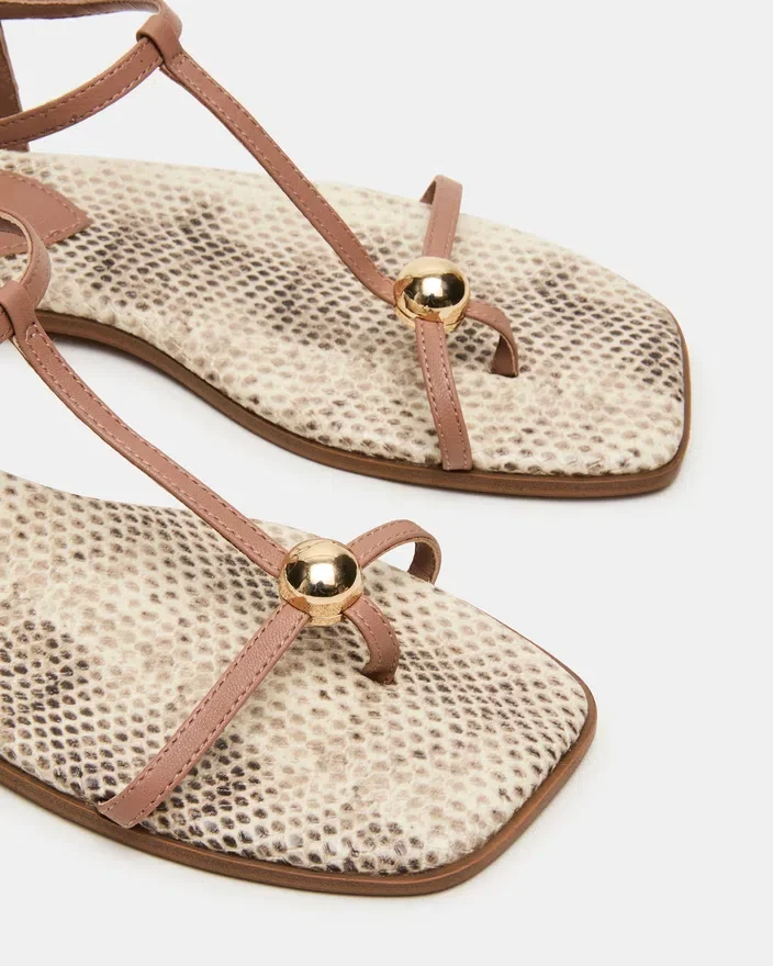 Îmbunătățiți-vă look-ul cu sandalele Ritzy Natural Snake cu vârf pătrat și curele, proiectate cu măiestrie atât pentru stil, cât și pentru confort. Vârful pătrat modern oferă un aspect sofisticat, în timp ce curelele delicate asigură o potrivire sigură. Perfecte pentru ținute elegante sau pentru a adăuga un plus de stil ținutelor Casual, aceste sandale combină designul contemporan cu versatilitatea purtării.